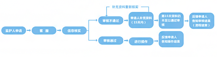 监护人需要亲自通过邮寄、传真、上门方式向我司提供申请需提交材料,向久焱网提出未成年人账户监控的申请。